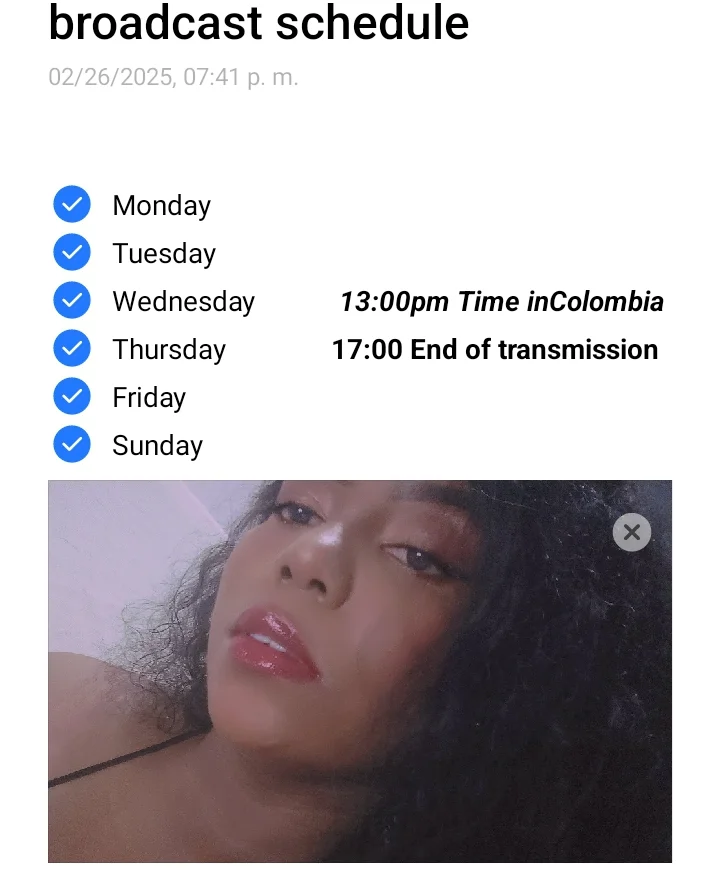There is no broadcast on Saturdays 🫶😘 If you miss me send me a message, I will answer you