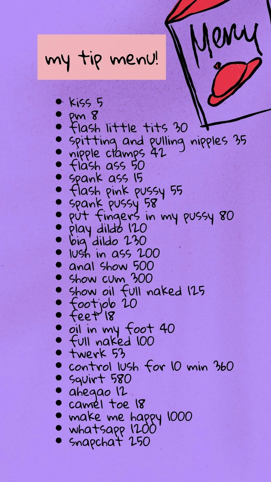 Ahegao, Op z'n Hondjes, Spanking, Erotische dans, Cameltoe, Vingeren, Seksspeeltjes, Tepelklemmen, Masturberen, Cowgirl, Pijpen, Deepthroat, Dildo of vibrator, Anaal